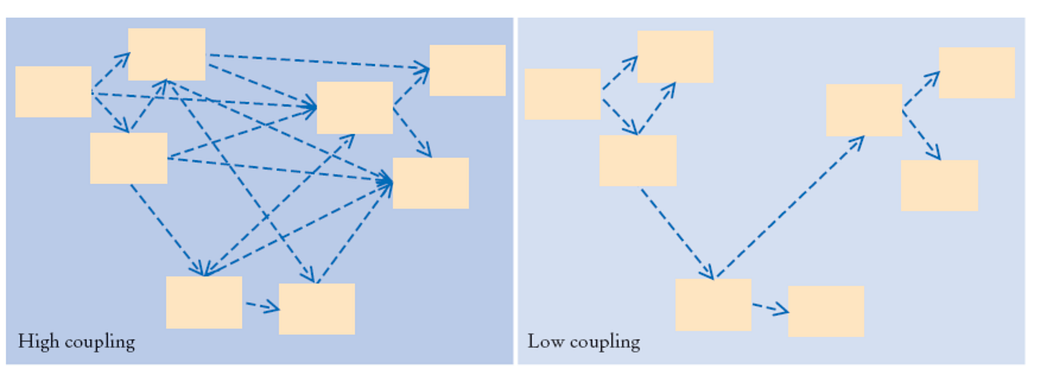 - External Coupling - if two modules want to talk to each other, they use some external interface. When the interface has been changed, it can no longer communicate anymore.