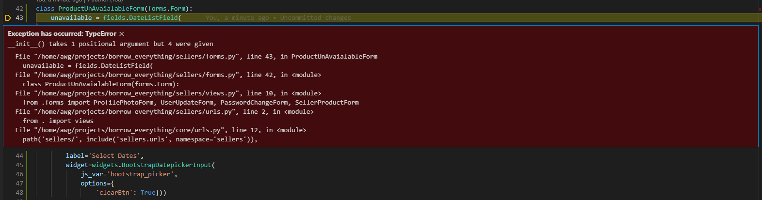 First of all, thank you for putting in the effort into producing this package. I am trying to follow your example and I am getting the following error. I have changed nothing in the code all I am doing is just copy and paste your code into my forms.py and I am getting the following error.