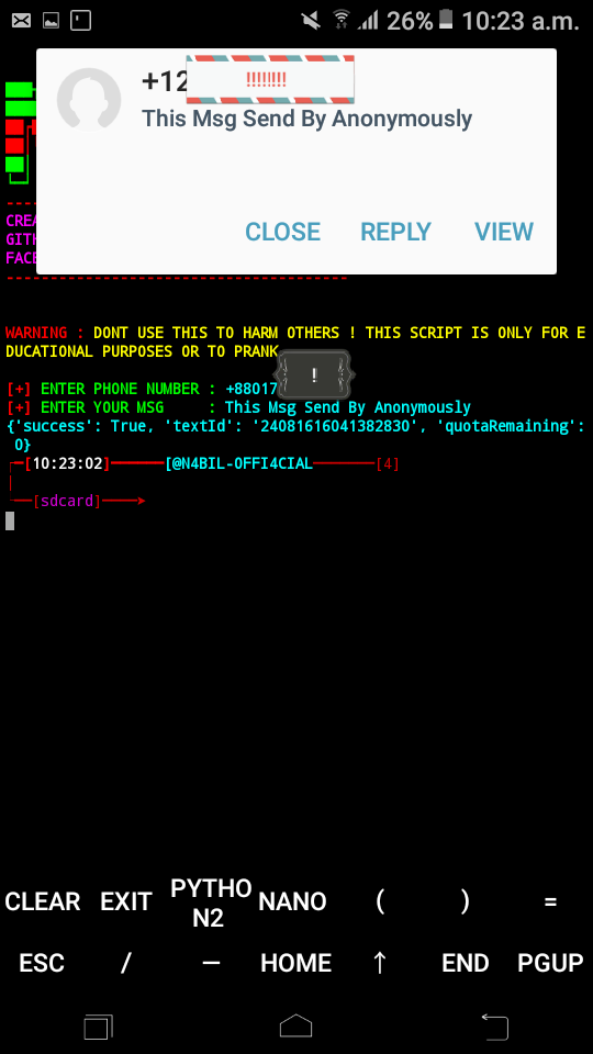 N-ANOM is a tool to send sms anonymously