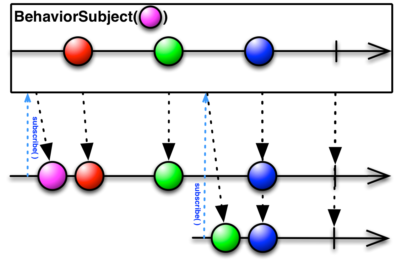 When an Subscriber subscribes to a BehaviorSubject, it begins by emitting the item most recently emitted by the source Observable (or a seed/default value if none has yet been emitted) and then continues to emit any other items emitted later by the source Observable(s).