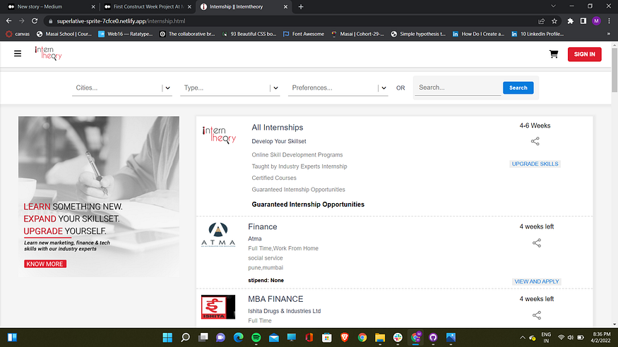 InternTheory is an Ed-tech website which offers internships and different kinds of online and offline certified courses like web development, android development, Digital Marketing Course etc. which helps you developing your skillsets and getting you a job.
