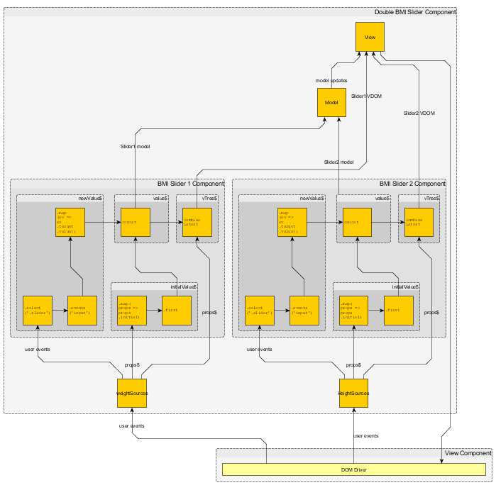 For example, here is the state of a dynamic data flow graph (taken from cycle documentation - BMI slider application), after a second component has been added :