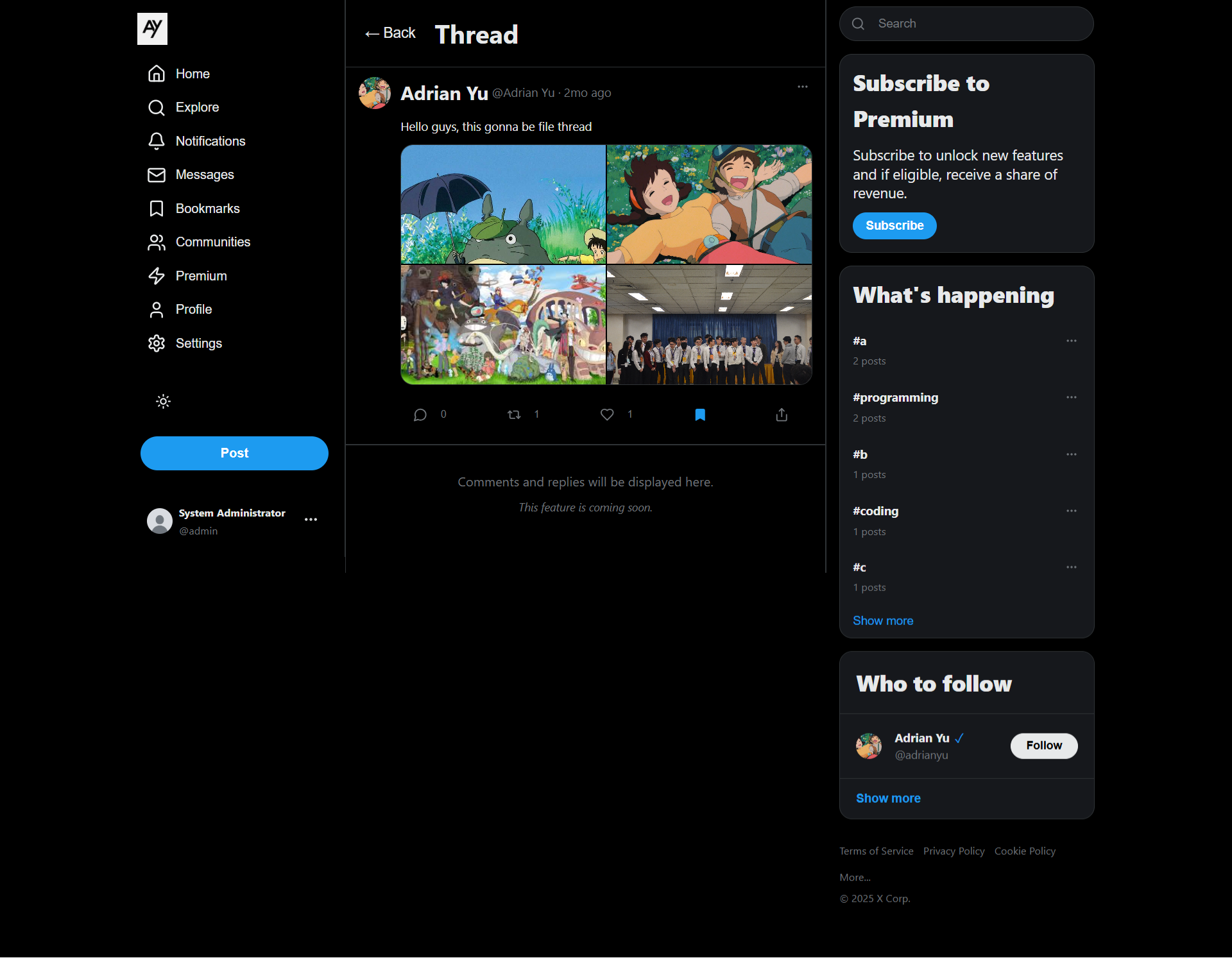 AYcom is a full-stack social media clone of Twitter (X) built with a distributed microservices architecture.