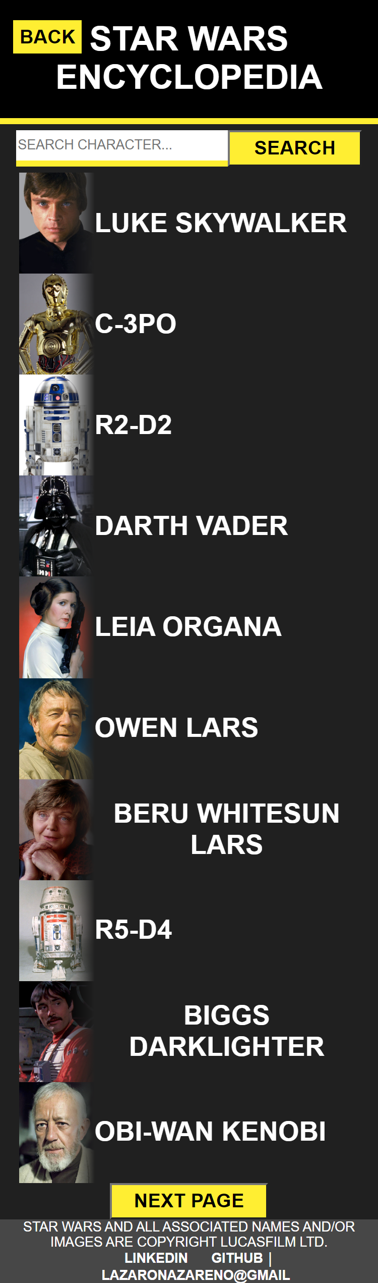 Crea una app que sirva para listar los personajes de Star Wars y que te permita buscarlos por nombre.