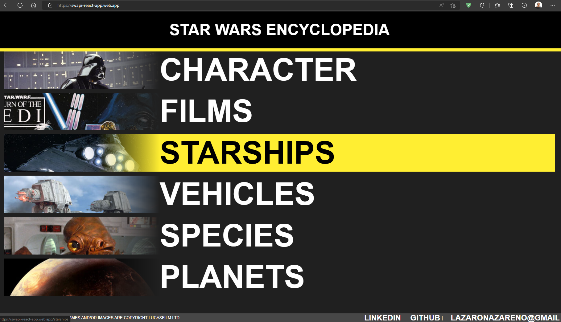 - OPCIONAL: Detalle de películas, vehículos, naves, especies...