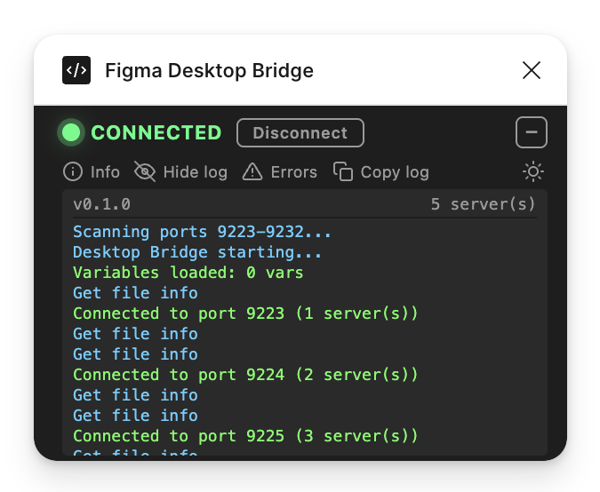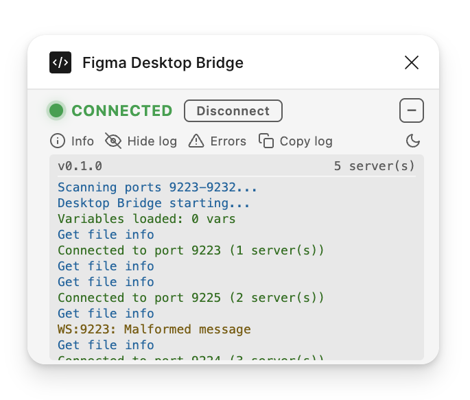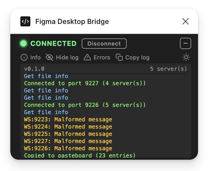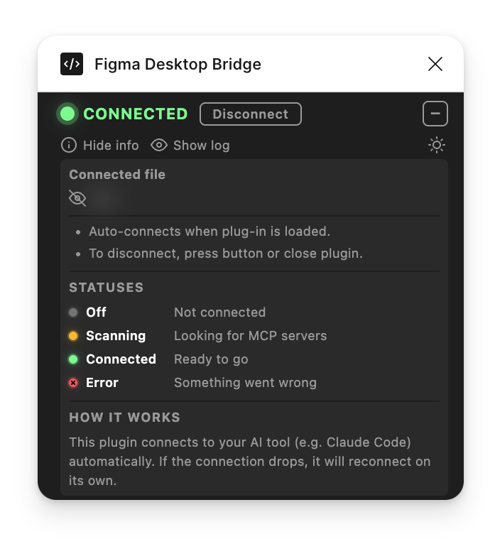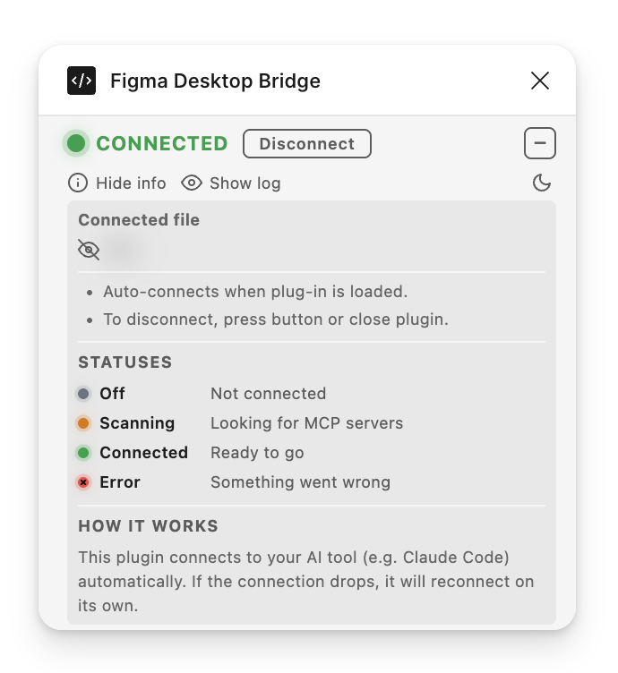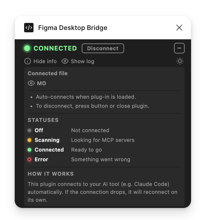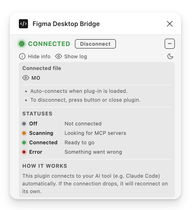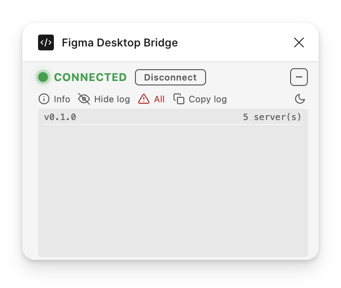 This update goes further: the plugin sits on top of the user's canvas, so every pixel matters. We've reduced the footprint to a single compact row by default and made the log actually useful for understanding what the AI agent is doing.