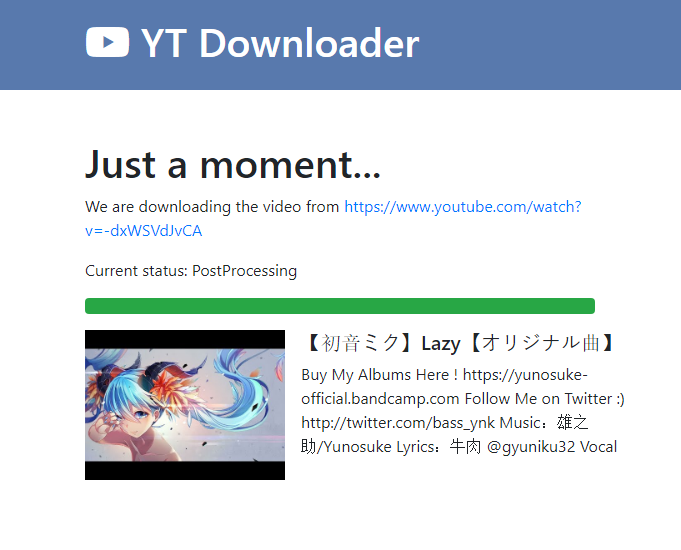 The easiest way to get started is to use my Docker image. It is preconfigured and it is immediately ready to use. https://hub.docker.com/r/std66/tomisoft-youtubedownloader-webui