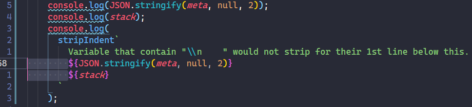 but, the 1st line of variables that contain their line break and indent not stripped at 1st line, it takes the 8 spaces indent from the code. (sorry if the description not very descriptive or hard to understand)
